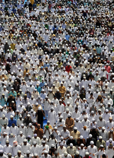 Indian Muslim devotees offer prayers as part of the celebration of Eid-ul –Fitr at Machkhowa Iddgah in Guwahati, Assam, India on Friday 9th August 2013. Photo by Dasarath Deka/Indian Photo Agency (InPA)