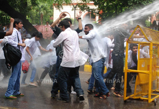 Police Used Water Canon On Medical Students Who Protest Against One Year Mandatory Rural not cumpalsary At Janter Mantar In New Delhi