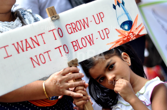 College students during a protest against atomic and nuclear bombing, to mark 6th August, Hiroshima Day or International Peace Day in Mumbai, India on August 6, 2013. Photo Credit by Sachin Halde/ Indian Photo Agency (InPA)