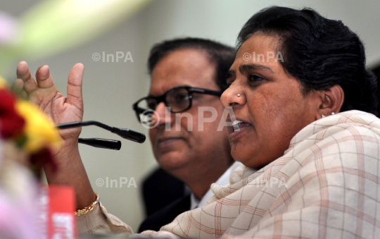 Former CM of UP and BSP President, Mayawati addressing a press conference in new Delhi on monday