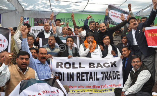 1Traders shouting slogans during the protest against UPA Governments during a demonstration against FDI in Retail at Jantar Mantar in New Delhi on wednesday