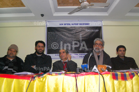 Indian human rights activists Gautam Navlakha and Kartik Murukutla speaks after displaying a report by two human rights groups during a press conference in Srinagar on December 06, 2012. Photo by Tariq Mir/Indian Photo Agency