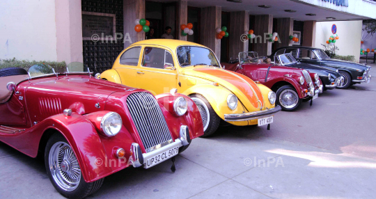 Vintage cars lined up during the vintage car rally organsied by the JK Tyre and Constitition club of India , in new Delhi on saturday