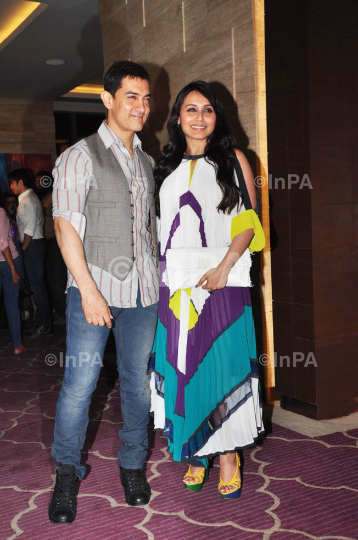 Bollywood actress Rani Mukherjee with Aamir Khan at the success party of film Talaash at JW, Juhu in Mumbai, India on December 08, 2012. Photo Credit: Indian Photo Agency