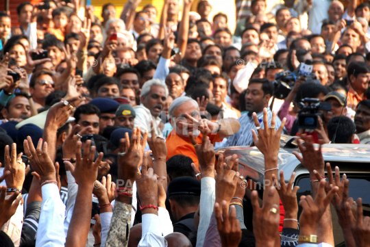 Gujarat Chief Minister Narendra Modi after casting his vote at a polling station in Ahmedabad, Gujrat, India on Monday, Dec 17, 2012. The counting of votes will be on December 20. Photo Credit: Indian Photo Agency