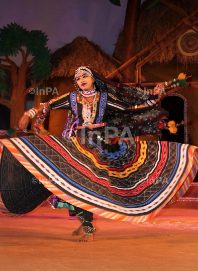 International Rajasthani Artists Performing cultural Rajasthani kaalbeliya dance in The Closing Ceremony in the Shilpgram fair Udaipur on Sunday Evening. Shilpgram Crafts Fair is organized to promote art and craft of Rajasthan.