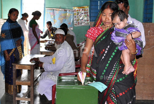 A lady casting her vote during 2nd phase of Panchayat Election at Village Bura Mayong at Marigaon District in Assam ,India on Wednesday 6th February 2013. Photo by Gitika Talukdar/Indian Photo Agency (InPA)