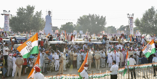 Congress leaders Rahul Gandhi during a Tractor Yatra along with Chief Minister Captain Amarinder Singh to stand in solidarity with the farmers protesting against the newly acted agricultural laws as part of his Kheti Bachao campaign in Moga district, Punjab, India, on, Oct. 04, 2020. Photo Credit: Indian Photo Agency (InPA)