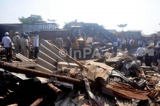 B M C demolished illegal slum (zopadpatti) at Ganpat Patil nagar Dahisar west in Mumbai. In pic tence in area.in mumbai.( Photo By Vijay Bate )