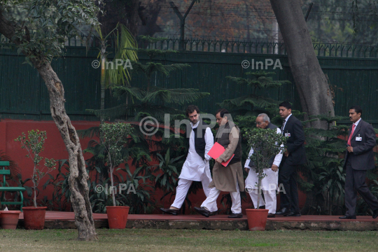 All India Congress Committee (AICC) Vice President Rahul Gandhi with Shakeel Ahmed, Motilal Vora, arrive for his first meeting with AICC office-bearers after becoming Congress VP at party office in New Delhi, India on January 31, 2013. Photo Credit: Indian Photo Agency (InPA)