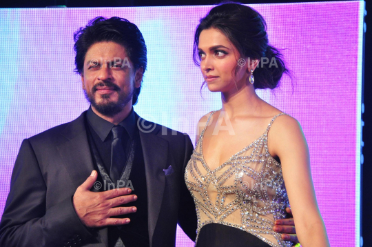 Bollywood actors Shahrukh Khan and Deepika Padukone during the music launch of the film Chennai Express in Mumbai, India on July 03, 2013. Photo Credit: Indian Photo Agency