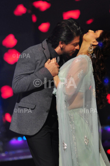 Bollywood actors Shahrukh Khan and Madhuri Dixit Nene on the sets of Jhalak Dikhla Jaa during the promotion of film Chennai Express, in Mumbai, India on July 3, 2013. Photo Credit: Indian Photo Agency (InPA)