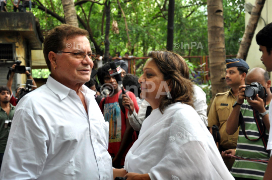Bollywood screenwriter Salim Khan during the funeral of 93 years old Indian actor Pran in Mumbai, India, on July 13, 2013. He was conferred the country's highest cinema honour Dada Saheb Phalke award in April 2013. Photo Credit: Indian Photo Agency (InPA)
