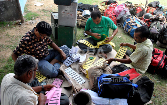 Polling staff making arrangement before going for West Bengal Panchayat election duty at Malda in West Bengal, India on July 21, 2013. Photo by Pankaj Ghosh/Indian Photo Agency (InPA)