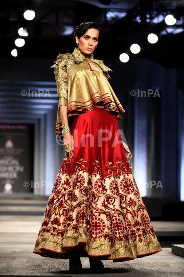 Model walks the ramp for Shantanu & Nikhi at India Bridal Fashion Week Delhi 2013 in New Delhi, India on July 23, 2013. Photo Credit: Indian Photo Agency (InPA)