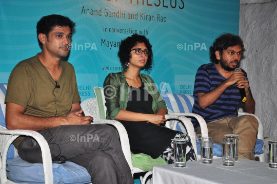 Bollywood filmakers Kiran Rao and Anand Gandhi with actor Sohum Shah at the Olive Bar and Kitchen to meet and greet with the press and discuss their latest film “Ship of Theseus” in Mumbai, India on July 24, 2013. Photo Credit: Indian Photo Agency (InPA)