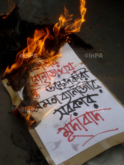 CPI(ML) Liberation activities during a demonstration for eviction of slum area at Kolkata, Nonadanga in Berhampore, Murshidabad district, West Bengal, India, Wednesday, April 11, 2012. Photo by Sanjib Kumar Pramanik/Indian Photo Agency