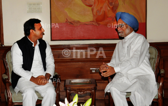 Chief Minister of Uttar Pradesh, Akhilesh Yadav meeting with Indian Prime Minister, Dr Manmohan Singh, in New Delhi on April 14, 2012. Photo Credit: Indian Photo Agency