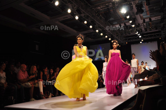 Indian models display creation by fashion designer Drashta during the Lakme Fashion Week 2012 Winter/Festive, in Mumbai, India on August 4, 2012. Photo Credit: Indian Photo Agency