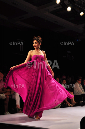 A model displays creation by fashion designer Drashta during the Lakme Fashion Week 2012 Winter/Festive, in Mumbai, India on August 4, 2012. Photo Credit: Indian Photo Agency