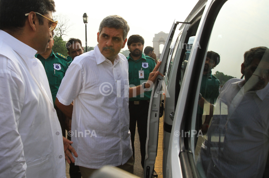 Congress MP Sandeep Dikshit during a flagging off event of new fleet of 'CATS' ambulance at India gate lawns in New Delhi on August 6, 2012. Photo Credit: Indian Photo Agency