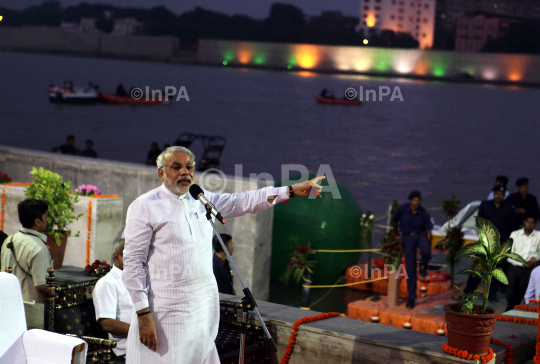 Gujarat Chief Minister Narendra Modi inaugurates water sports activities and the Sabarmati river front project's walkway in Ahmedabad, Gujarat, India on August 15, 2012. Photo Credit: Indian Photo Agency