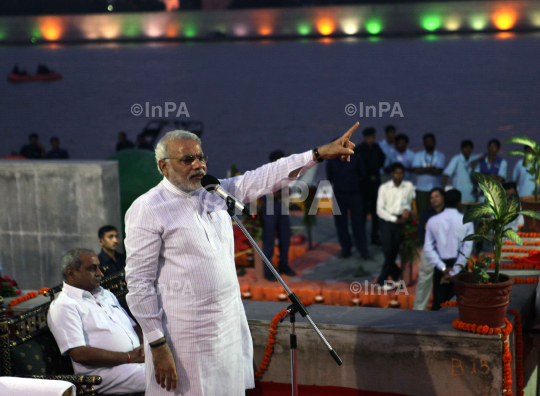 Gujarat Chief Minister Narendra Modi inaugurates water sports activities and the Sabarmati river front project's walkway in Ahmedabad, Gujarat, India on August 15, 2012. Photo Credit: Indian Photo Agency