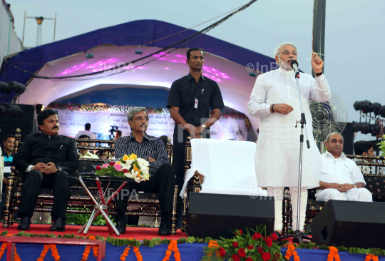 Gujarat Chief Minister Narendra Modi inaugurates water sports activities and the Sabarmati river front project's walkway in Ahmedabad, Gujarat, India on August 15, 2012. Photo Credit: Indian Photo Agency
