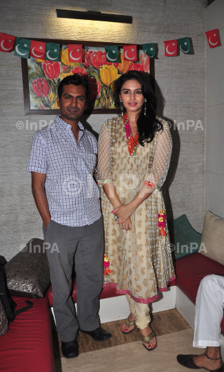 Bollywood actors Nawazuddin Siddiqui, Huma Qureshi at the Iftaar party hosted to celebrate the success of his film 'Gangs of Wasseypur 2' in Mumbai, on August 17, 2012. Photo Credit: Indian Photo Agency