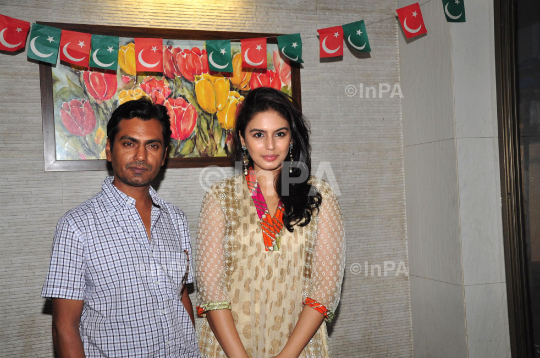 Bollywood actors Nawazuddin Siddiqui, Huma Qureshi at the Iftaar party hosted to celebrate the success of his film 'Gangs of Wasseypur 2' in Mumbai, on August 17, 2012. Photo Credit: Indian Photo Agency