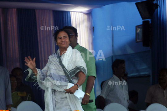 West Bengal Chief Minister Mamata Banerjee waves at a public rally in Itahar in North Dinajpur, West Bengal on Thursday, August 30, 2012. Photo By Pankaj Ghosh/Indian Photo Agency