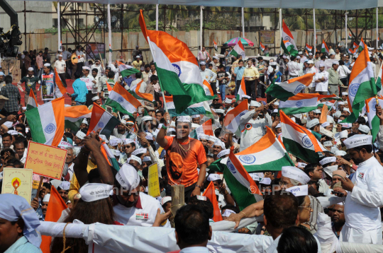 Supporters of Indian anti-corruption activist Anna Hazare, on the first day of his hunger strike at MMRDA ground in Mumbai, India, Tuesday, Dec. 27, 2011. Photo Credit: Indian Photo Agency