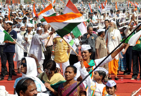 Supporters of Indian anti-corruption activist Anna Hazare, on the first day of his hunger strike at MMRDA ground in Mumbai, India, Tuesday, Dec. 27, 2011. Photo Credit: Indian Photo Agency