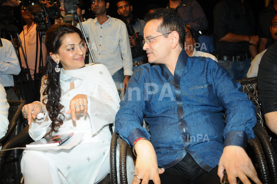 Juhi Chawla with Champak Jain: A dual treat party Sanjay Nirupam unveiled Nikhil and Rahul's “La Patio” along with the Launch of Actor – turned – Poet Rajeev Paul’s Book “Mumbai, Mohabbat aur Tanhai” Launch by Actress Juhi Chawla, in Mumbai India on 31/01/2012. Photo Credit: Indian Photo Agency