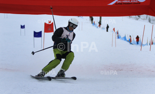 A skiers during the first Ski Alpine Premier League at world famous Ski slopes and tourist resort Solang Nallah organised by Ski Himalayan in Manali of Kullu district, Himachal Pradesh, India on 08/02/2012. Photo Credit: Indian Photo Agency