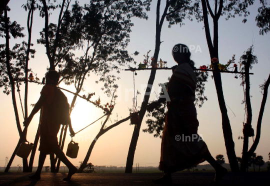 Women on way to shiv temple during Mahashivratri festival in Murshidabad , West Bengal on 19/02/2012. Photo by Sanjib Kumar Pramanik/Indian Photo Agency