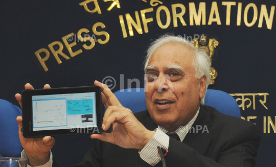 Indian Union Minister for Human Resource Development and Communications and Information Technology, Kapil Sibal launching the Virtual Labs under National Mission on Education through Information and Communication Technology (NMEICT), in New Delhi on February 23, 2012. Photo Credit: Indian Photo Agency