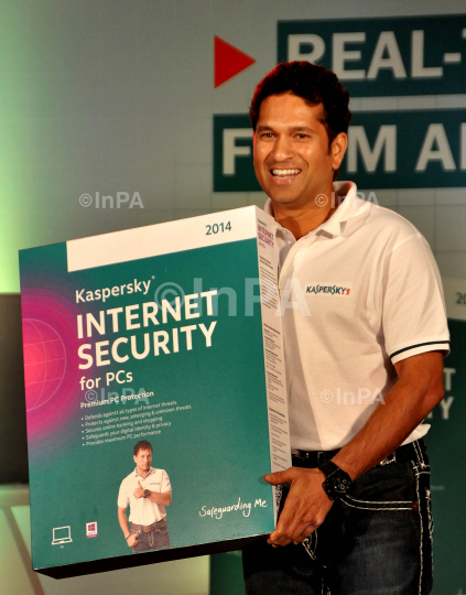 Kaspersky Brand Ambassador & Indian Cricket Star Sachin Tendulkar at the launch of Kaspersky Antivirus 2014 & Kaspersky Internet Security 2014- The latest Versions of Proven Security Solutions for home users, in Mumbai, India on August 02, 2013. Photo by Sachin Halde/Indian Photo Agency (InPA)