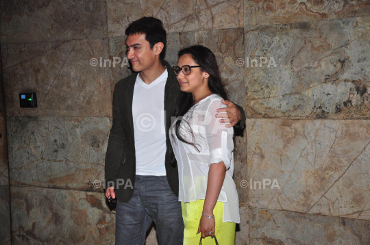Bollywood actors Aamir Khan with Rani Mukherjee during the special screening film Ship of Theseus in Mumbai, India on July 16, 2013. Photo Credit: Indian Photo Agency (InPA)