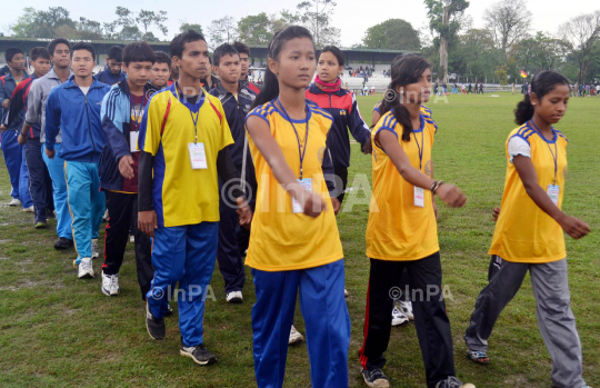 Athletes Parade during opening Ceremony OIl India 37th All Assam Inter District Athletics Championship 2013 Organised by Duliajan Sports Association at Neharu Maidan Duliajan, in Dibrugarh District, Assam, India on April 04, 2013. Photo by Manash Pratim Gogoi/Indian Photo Agency (InPA)
