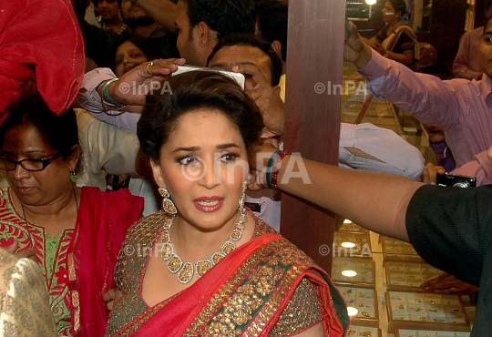Bollywood actress Madhuri Dixit at the inauguration of PN Gadgil Jeweller's new showroom in Mumbai, India on August 3, 2013. Photo Credit: Indian Photo Agency (InPA)