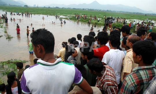Hundreds of people thronged near a swamp at Chachal in Guwahati on Monday 25th June 2012, to collect currency notes of Rs 1,000 and Rs 500 which were found floating in the swamp, as the news about the currency notes spread, people in the area thronged the spot. People were seen fishing out currency notes of Rs 1,000 and Rs 500 from the swamp near the Ginger Hotel in Chachal. Some people even came prepared with fishing nets to check deep into the swamp for the wet currency notes. Photo by Ujjal Deb/Indian Photo Agency