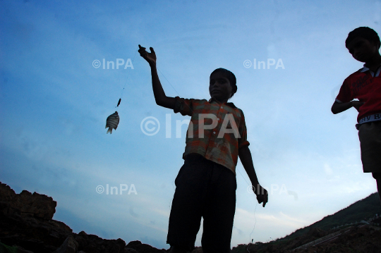 Children fishing at Visakhapatnam in Andhra Pradesh, India, 13/07/2011. Photo by Narendra Reddi/ Indian Photo Agency