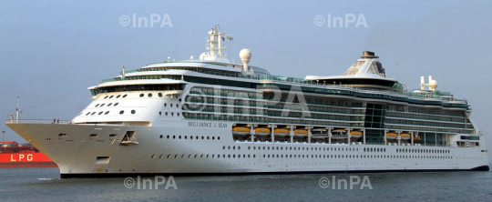 Giant luxury cruise vessel 'MV Brilliance of the Seas' of Royal Caribbean International with 1962 passengers and 860 crew members called at NMPT, in Mangalore, Karnataka, India on 1st April 2012 , Sunday. The passengers have visited various tourist locations like cashew processing units, 1000 Pillar temple, Monolithic statue of Lord Bahubali, Soans farm, St. Aloysius Chapel, Kadri Temple, Gokarnanatha Temple, Pilikula, Summer sands, Ullal, etc. Photo by RK Bhat/Indian Photo Agency