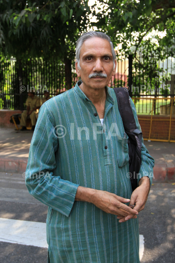 Ashok Khandelwal, advisor to the Supreme Court's Commissioner in the right to food case during a protest ëKhali Thalií rally (Empty Plate Rally) after launching the Roti Bhaat Satyagrah demanding a universal PDS held by the Right to Food Campaign at Jantar Mantar in New Delhi on 01/11/2011. Photo Credit: Indian Photo Agency