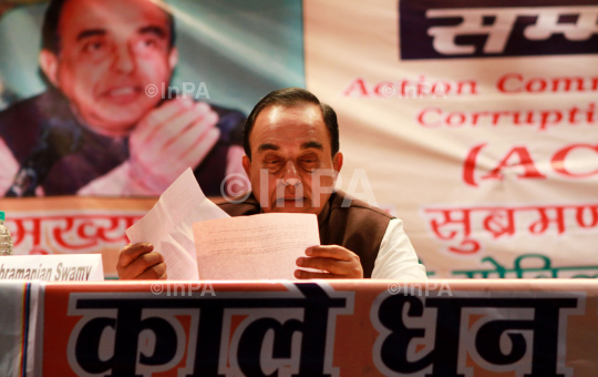 Janata Party President Subramanian Swamy during an event against corruption in New Delhi, India, Saturday, Feb. 4, 2012. Judge OP Saini dismissed Swamy's petition plea for trial of Home Minister P Chidambaram along with former telecommunications minister A Raja who was forced to resign last year because of a multibillion-dollar telecoms scandal and later arrested by police. Two days ago, India's top court ruled that the 122 licenses granted in the 2008 deal be scrapped. Photo Credit: Indian Photo Agency