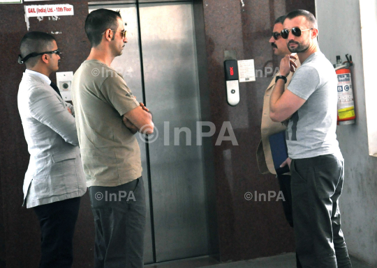 Italian Marines Massimiliano Latorre and Salvatore Girone waiting for the lift at the Ernakulam city police commissioner office by their daily appearance before the Ernakulam city police commissioner ,on the 2nd day after bail at Kochi on June 4, 2012. The two marines are accused of fatally shooting two Indian fishermen from the Italian cargo vessel Enrica Lexie offsouthwest India. The marines were part of the cargo ship's security team, and India accuses them of mistaking the fishing boat for a pirate ship. Photo by AS Satheesh/Indian Photo Agency