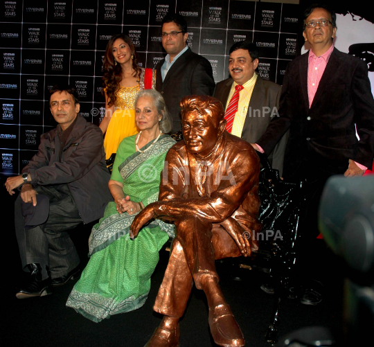 Bollywood actor Suneil Anand, son of late legendary actor Dev Anand with actress Waheeda Rehman poses during the unveiling of brass statue of Dev Anand for 'Walk of the Stars' by UTV Stars in Mumbai, India on December 04, 2012. Photo Credit: Indian Photo Agency