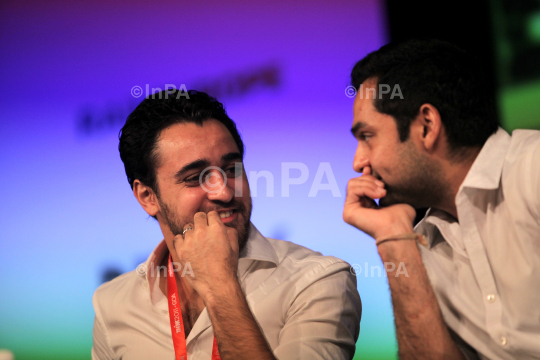 Bollywood actors Imran Khan with Abhay Deol during a three day conclave "Think Festival" in Goa, India on November 05, 2011. .Photo Credit: Indian Photo Agency