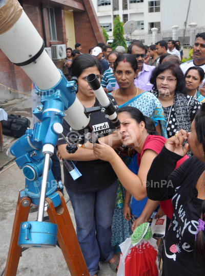 A young girl looks through the telescope of great transit of Venus from Guwahati Planetarium in Guwahati on Wednesday 6th June 2012. Photo by Dasarath Deka/Indian Photo Agency